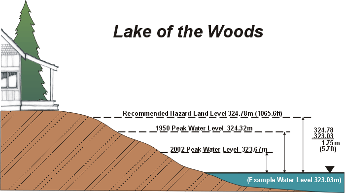 The lake level has risen above the 2014 peak of 323. 78 m (1062. 29 ft) and is below the record peak since regulation began of 324. 31 m (1064. 0 ft), set in july of 1950. Lake of the woods, minn. 36 rowsfollowing record spring rainfall, extremely high water levels remain on lake of the woods and the english and winnipeg rivers. Exercise caution on and around these waters. Water level forecasts for lake of the woods, lac seul and the winnipeg river in ontario continue to be issued on monday, wednesday, and friday on the notice board Rainy river and lake of the woods water levels. The first link that follows is to real time information on rainy river discharge levels. The second link contains information on lake of the woods levels, from the lake of the woods control board. Usgs provisional flow data, rainy river at manitou rapids.